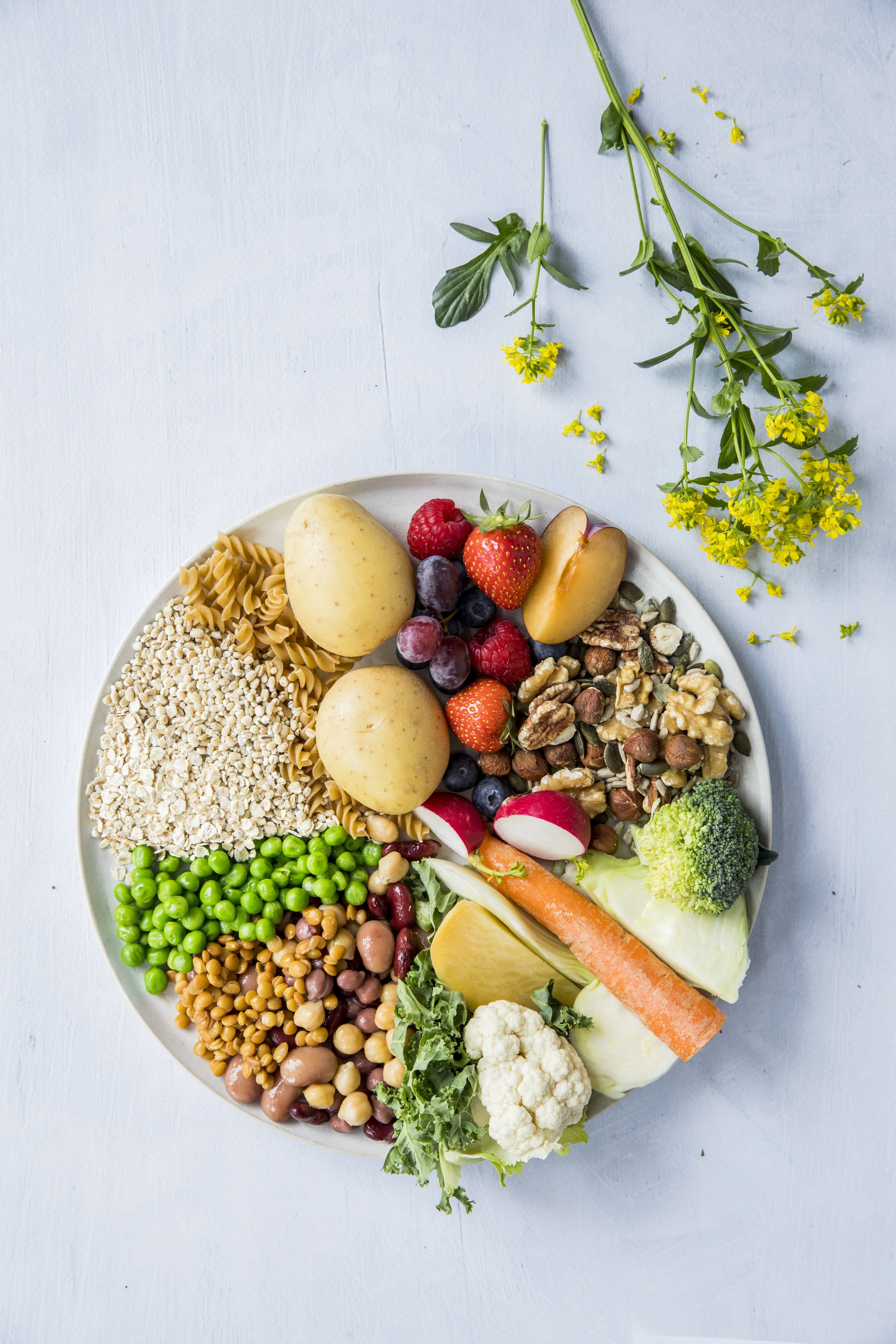 Disse fem matvaregruppene gir tilsammen mye fiber, langsomme karbohydrater, sunt fett og rikelig med proteiner samt drøssevis med sunne plantestoffer. De utfyller hverandre når det gjelder vitaminer, mineraler og sporstoffer.